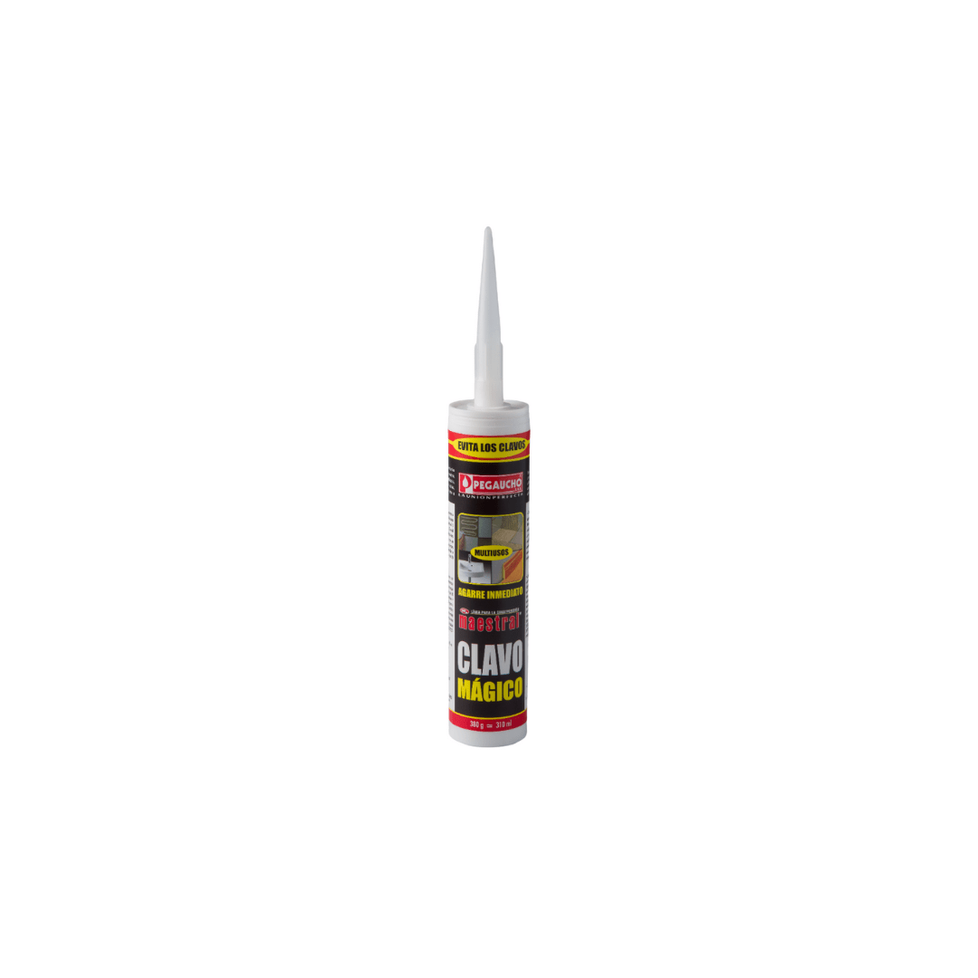 Clavo Mágico es usado para la fijación de objetos prefabricados en la construcción como paneles de yeso, fibrocemento y poliestireno expandido, molduras de poliuretano, PVC, madera y yeso, canaletas de PVC para cables, piezas de cerámica, porcelanato, azulejos y cenefas, percheros, repisas, portallaves, zócalos (guarda-escobas), marcos, tiradores de puertas y ventanas, señalizaciones (nomenclaturas), inodoros, tinas, jaboneras, toalleros, espejos y muchos otros elementos comunes en oficinas y hogares.