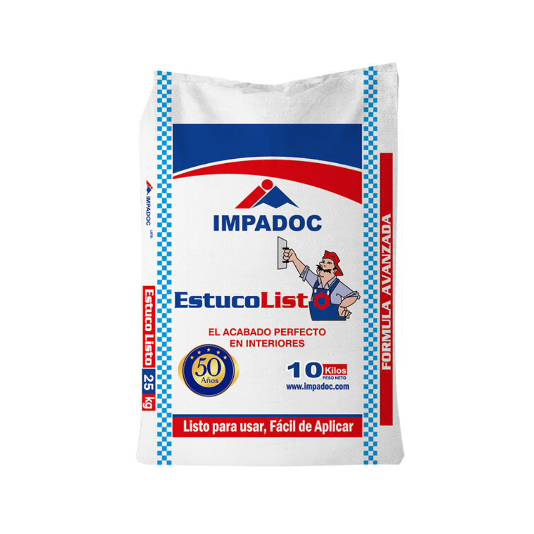 Producto en polvo de color blanco crema, diseñado para acabados en la construcción, sustituye la preparación de estucos tradicionales en obras porque viene listo para usar. Estucolisto está fabricado industrialmente con ligantes, calizas de alta pureza y aditivos de última tecnología, asegurando acabados finos y durables con mayor economía.